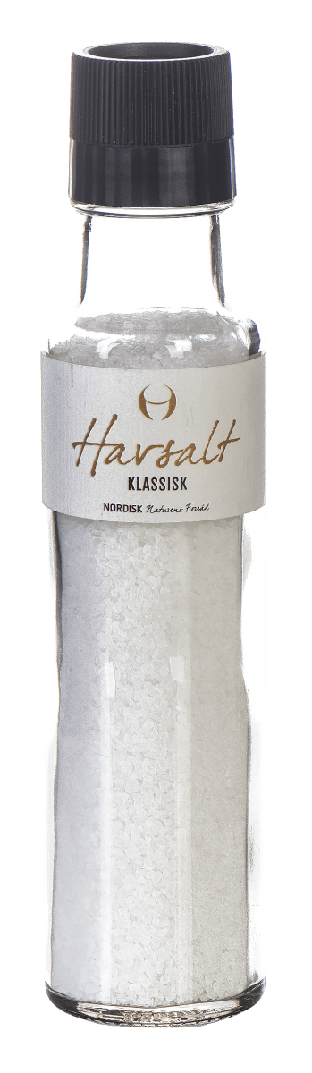 Havssalt. Kan innehålla spår av SKALDJUR. Förvaras torrt.