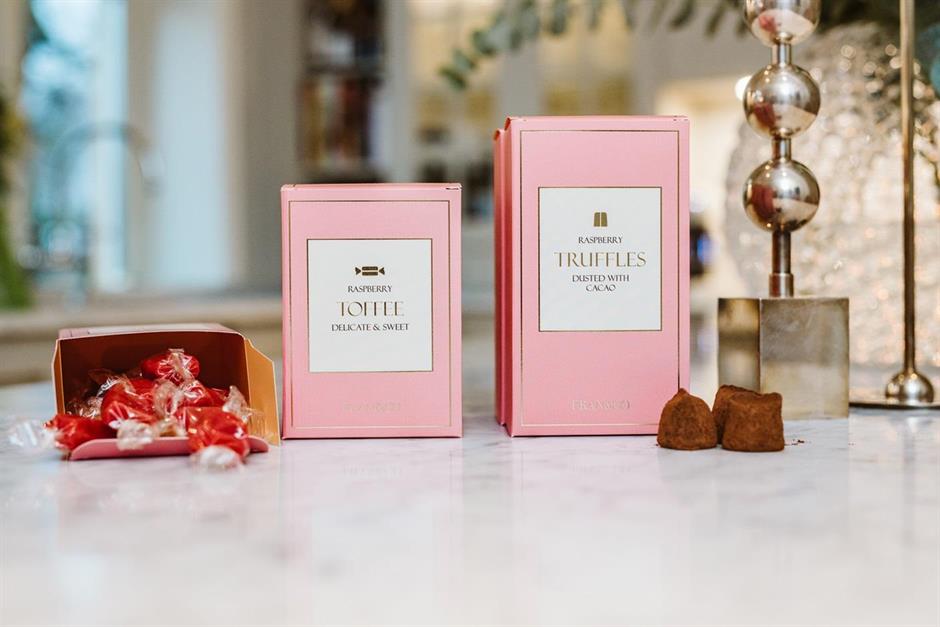 Ingredienser: Vegetabiliskt fett (kokos, RSPO-certifierad palmkärna) i varierande proportioner, socker, fettreducerat kakaopulver 12%, vasslepulver (mjölk), hallonflingor 0,6 % (hallon 40 %, socker 35 %, majsstärkelse 25 %), emulgeringsmedel (sojalecitin), arom (vanillin, hallon). Kan innehålla spår av hasselnötter, mandel & dess biprodukter