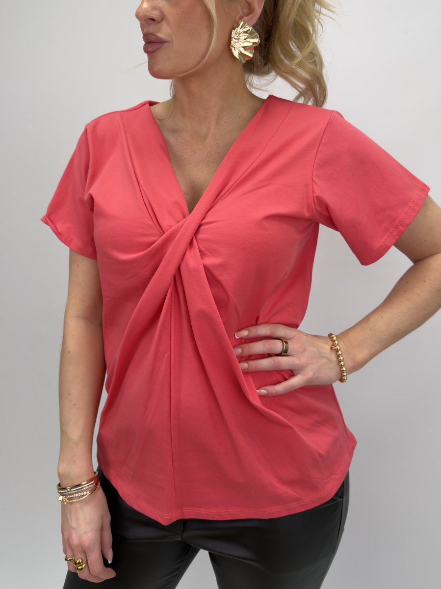 Anea är en mjuk och bekväm jerseytopp i bomull med smickrande drapering framtill och V-ringning. En avslappnad men elegant stil som passar lika bra till vardags som när du vill vara lite mer uppklädd.