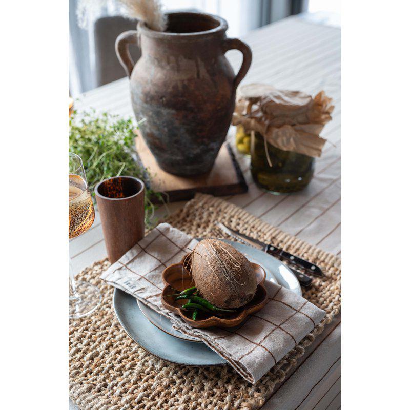 Glesvävd jute bordstablett som ger ett coolt rutmönster och en rustik känsla till bordet.
