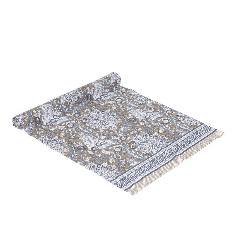 Bordslöpare i 100% bomull med ett modernt och härligt mönster som skapar en fräsch och stilfull känsla i dukningen. Löparen är prydd med en elegant bård runtom som ramar in designen och ger ett harmoniskt och genomtänkt uttryck.