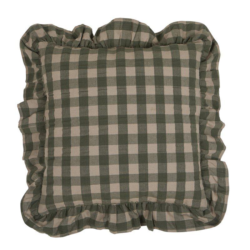 Kuddfodral i bäckebölja med klassiskt rutmönster är en charmig och stilfull detalj i ditt hem. Den eleganta volangen längs kanterna ger en extra touch av romantik, vilket mjukar upp det klassiska utseendet och skapar en inbjudande känsla.